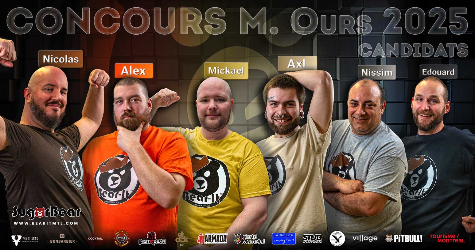 Ils sont six! Six beaux spécimens prêts à tout donner pour conquérir le titre de M. Ours MTL 2025 ????✨Et on te prévient : tu n’es pas prêt ! Si